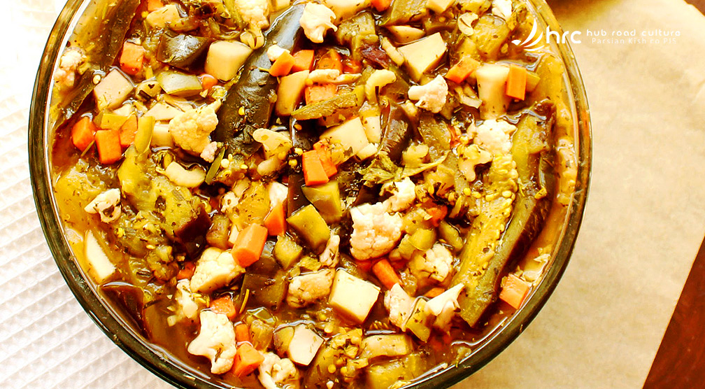 Torshi is a traditional Iranian condiment that is made by pickling various vegetables and herbs in a vinegar and salt solution. The word “torshi” comes from the Persian word “torsh,” which means sour, and the condiment is known for its sour and tangy taste.