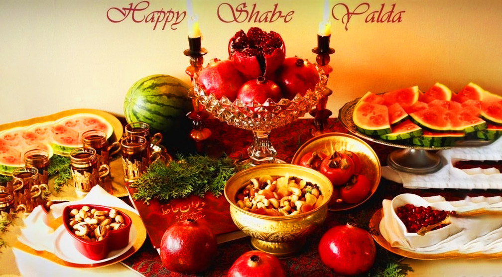 Various ceremonies are common in different regions and cities of Iran in this night such as eating special fruits i watermelon and pomegranates, nuts and sweets, cooking local food, reading Hafiz, horoscope, reading poetry, reading the Shahnameh, reading stories, etc., each of which has a symbolic aspect and they are the signs of Blessing, health, abundance and happiness.